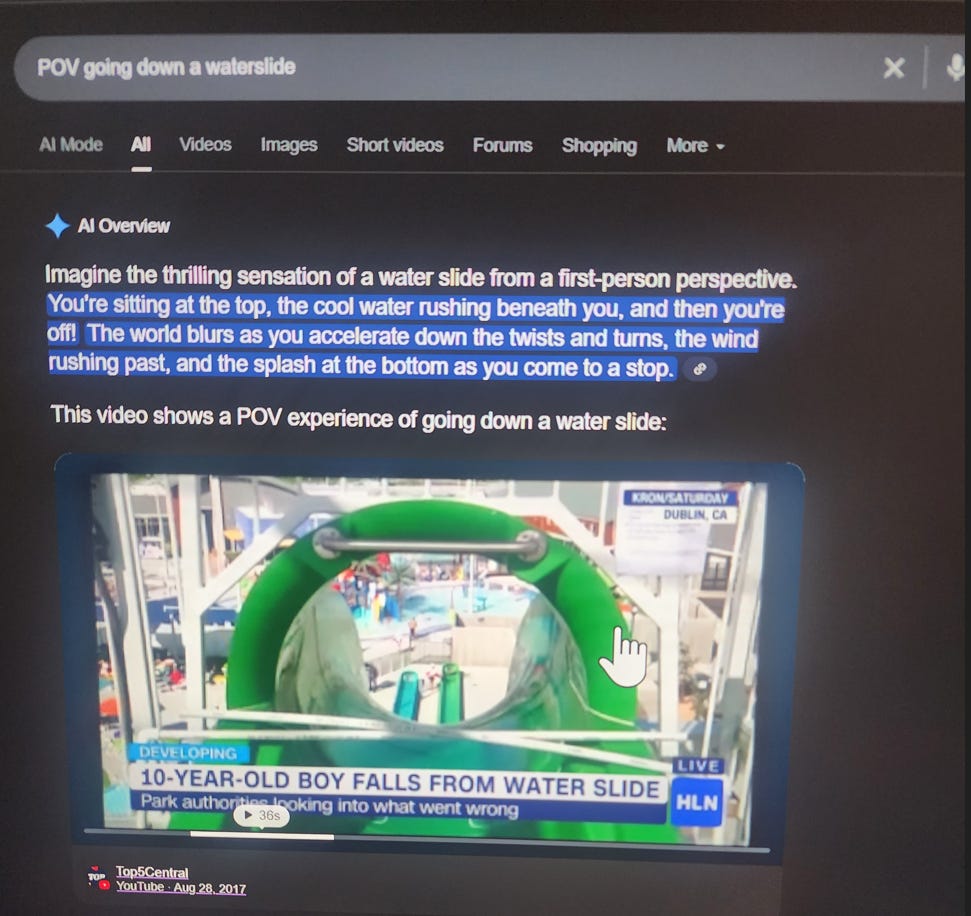 Image: I was looking for an animation reference of going down a waterslide and Google’s AI overview really pulled through