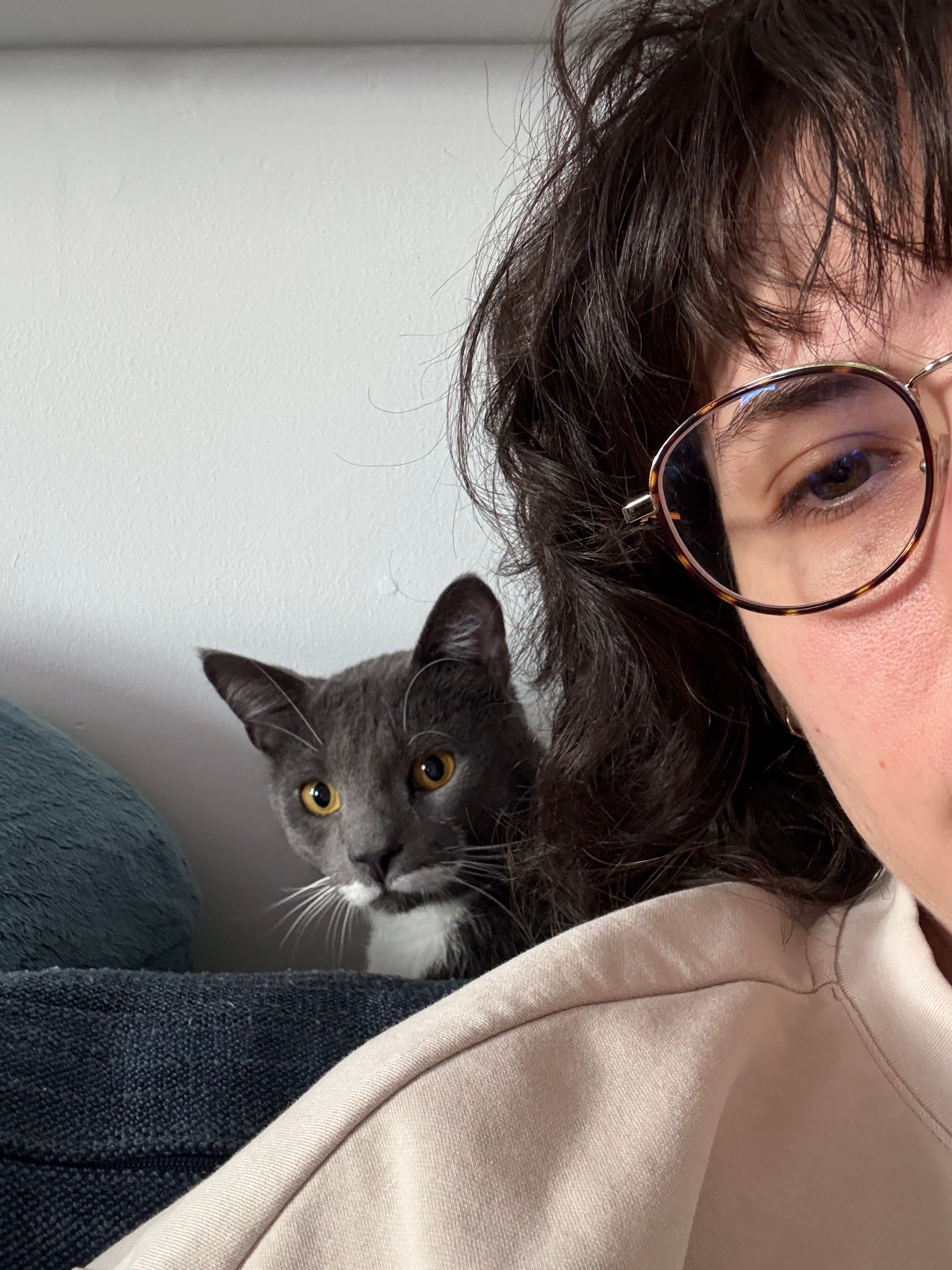 an image: the first picture I have with my cat Bandit the morning after we adopted him