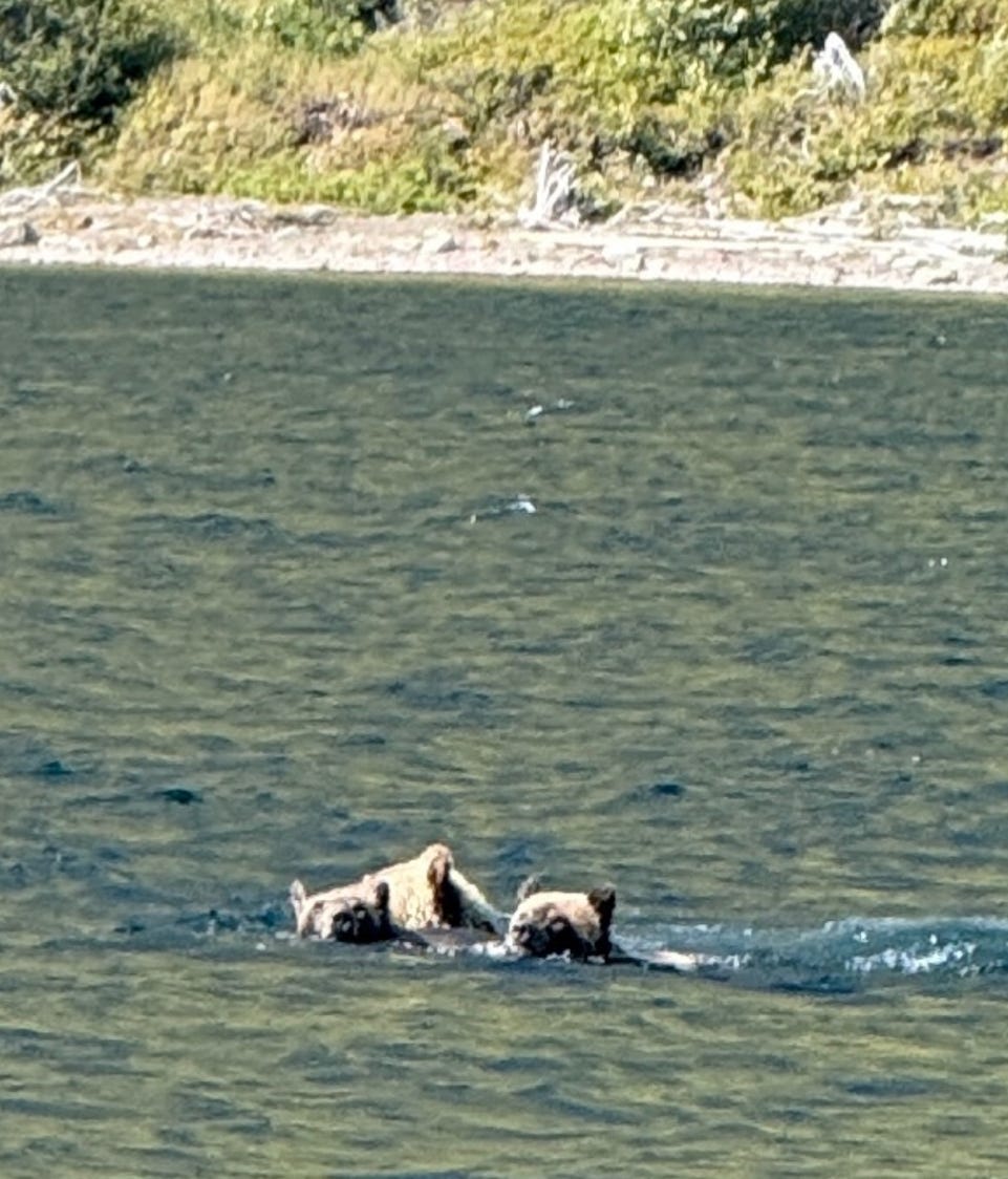 Image: Three grizzly bears swimming toward you, Montana, September 2025.